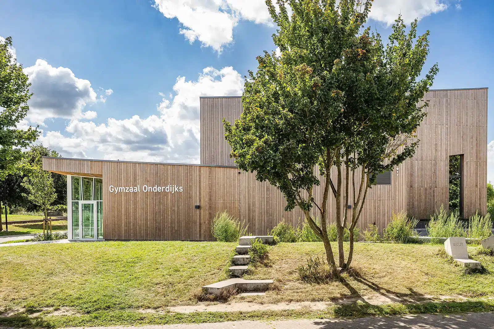 Het nieuwe sportgebouw Onderdijks vormt de afronding van het ‘Hart van Onderdijks’ in Kampen. Het gebouw is gesitueerd tussen de scholen Het Stroomdal en Villa Nova, het centrale plein en het Waterplantsoen. In het ontwerp is nadrukkelijk rekening gehouden met de stedenbouwkundige context: bouwen in de rooilijn van de Lange Akker, het versterken van zichtlijnen naar de woonomgeving en het aangaan van een relatie met zowel plein als park. Twee duidelijk herkenbare entrees zorgen voor oriëntatie en toegankelijkheid.